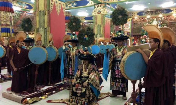In accordance with the instructions of the great master, Chögyal Terdag Lingpa, and to commemorate the anniversary of his parinirvana, the sangha of Mindrolling Monastery perform the Kagyed drubchen each year at the end of the first lunar month.