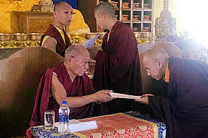 Story and photos from the annual meeting of the Mindrolling administrative board, shedra examination and certificate presentation and annual report cards for monks of the primary and secondary schools.