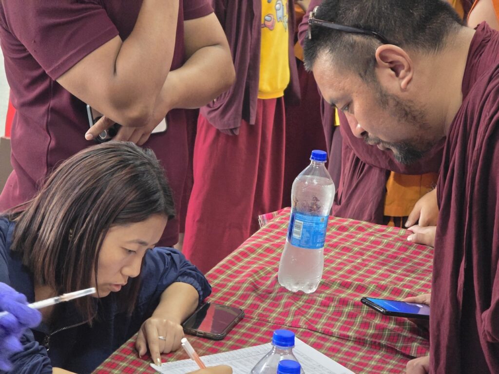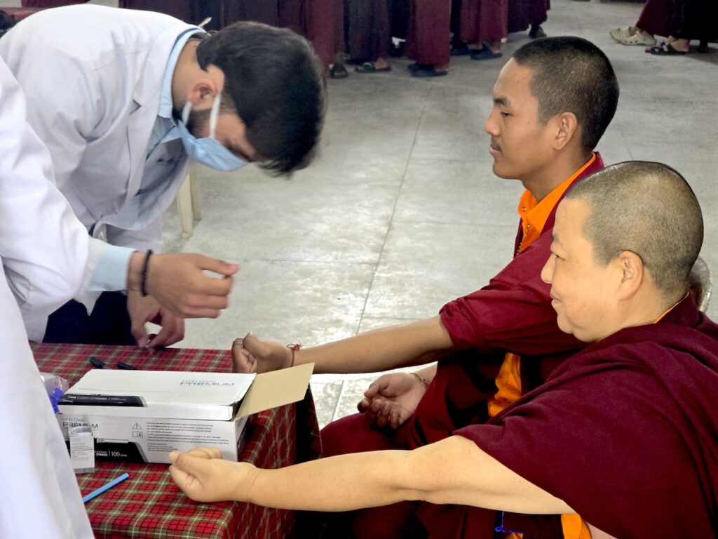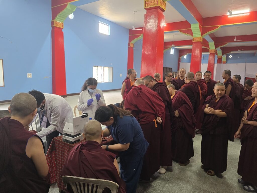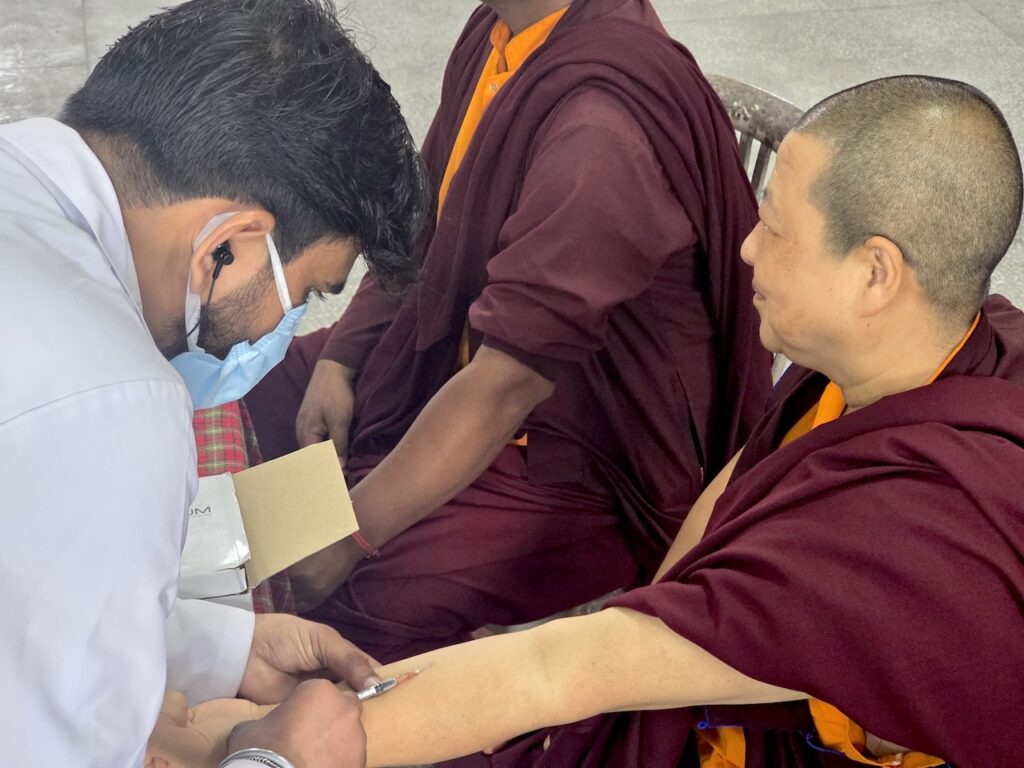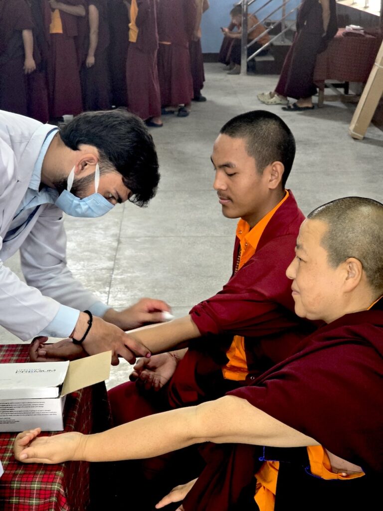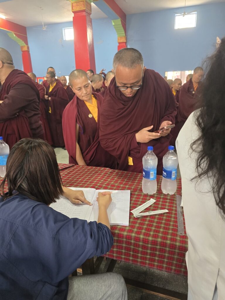 Community nurse Rigzin Wangmo la led a team of healthcare professionals who conducted comprehensive tuberculosis screenings and general medical check-ups for the monks, nuns, staff, and members of the Mindrolling community.  The clinic also included full medical examinations for senior monks and nuns.