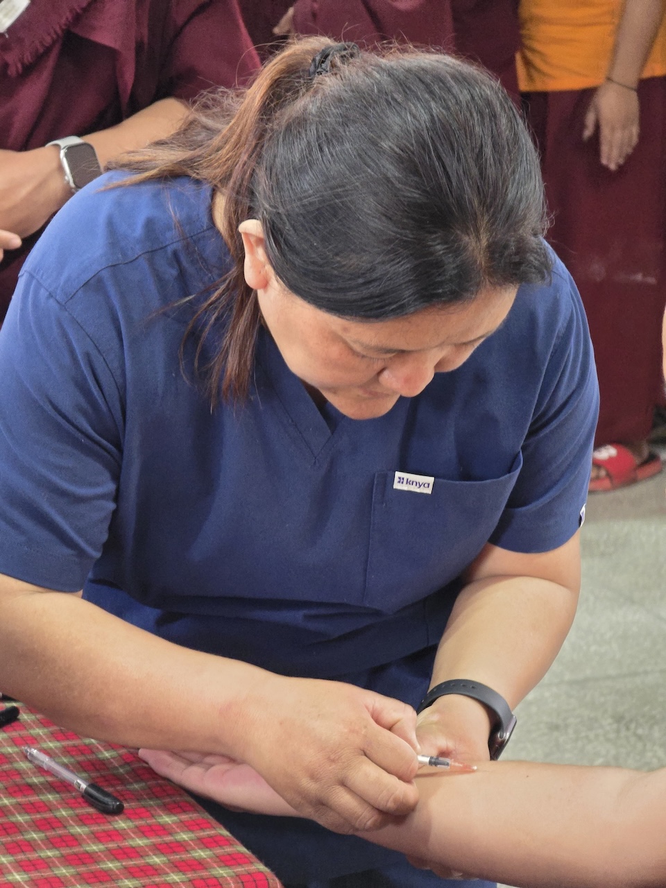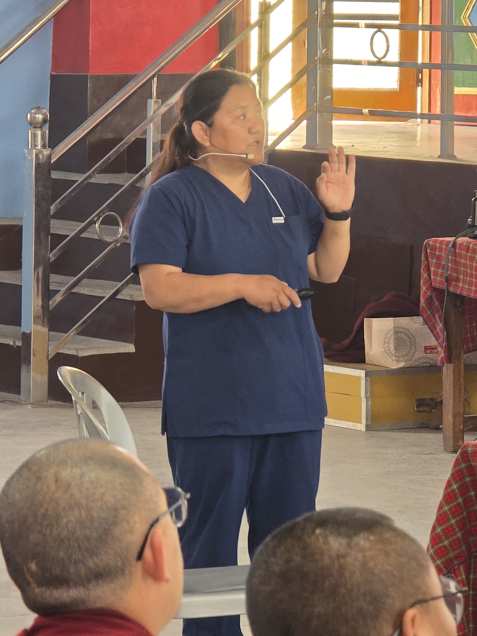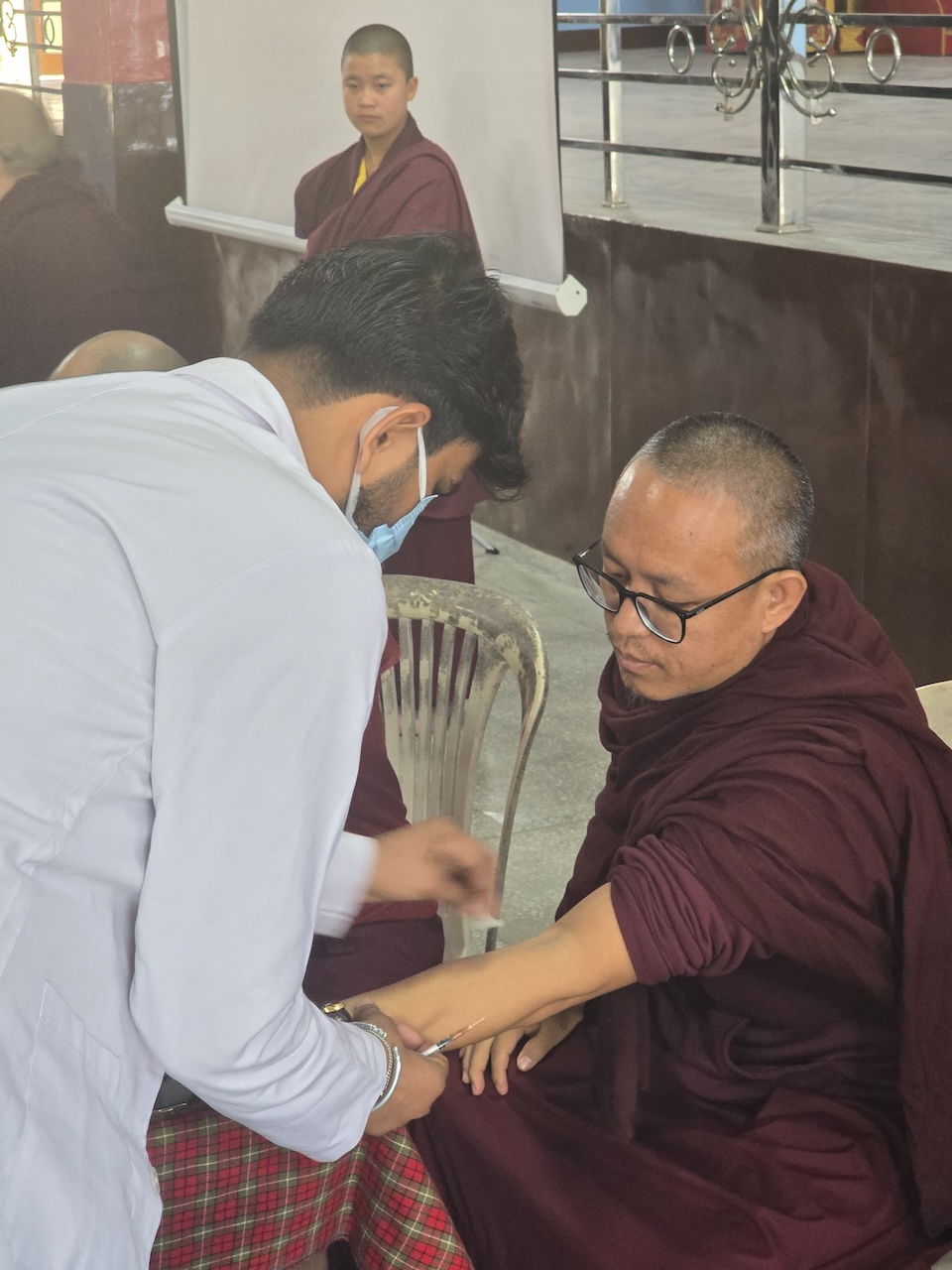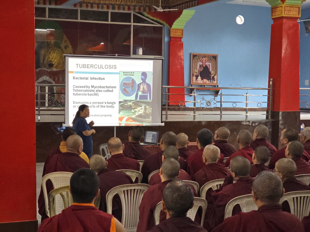 Community nurse Rigzin Wangmo la led a team of healthcare professionals who conducted comprehensive tuberculosis screenings and general medical check-ups for the monks, nuns, staff, and members of the Mindrolling community.  The clinic also included full medical examinations for senior monks and nuns.