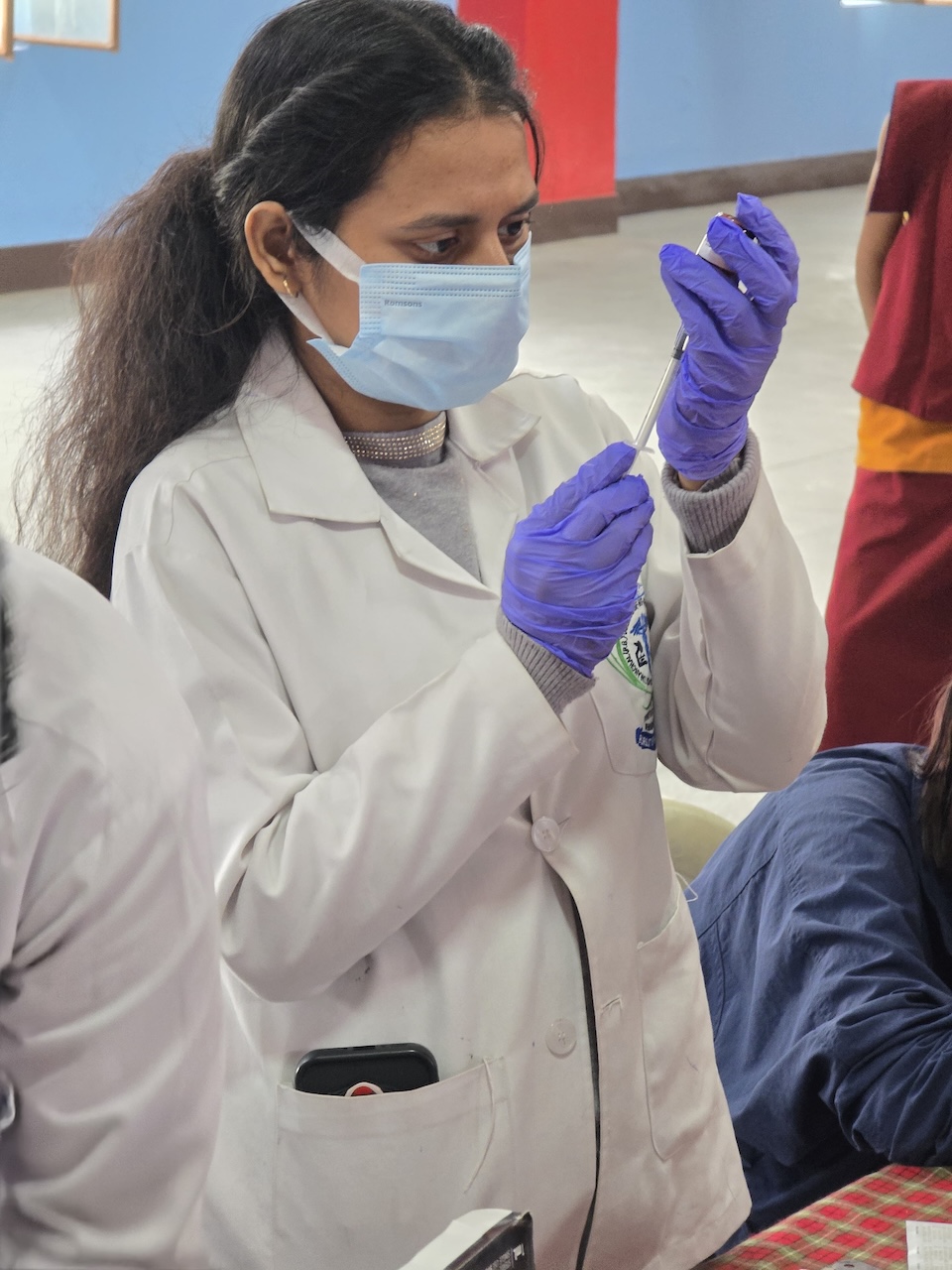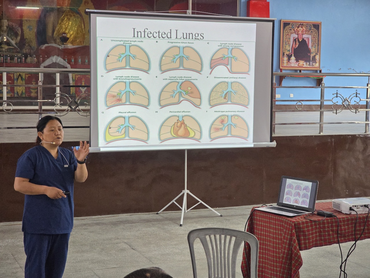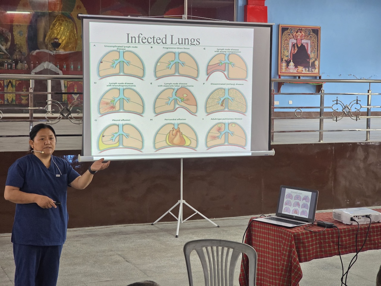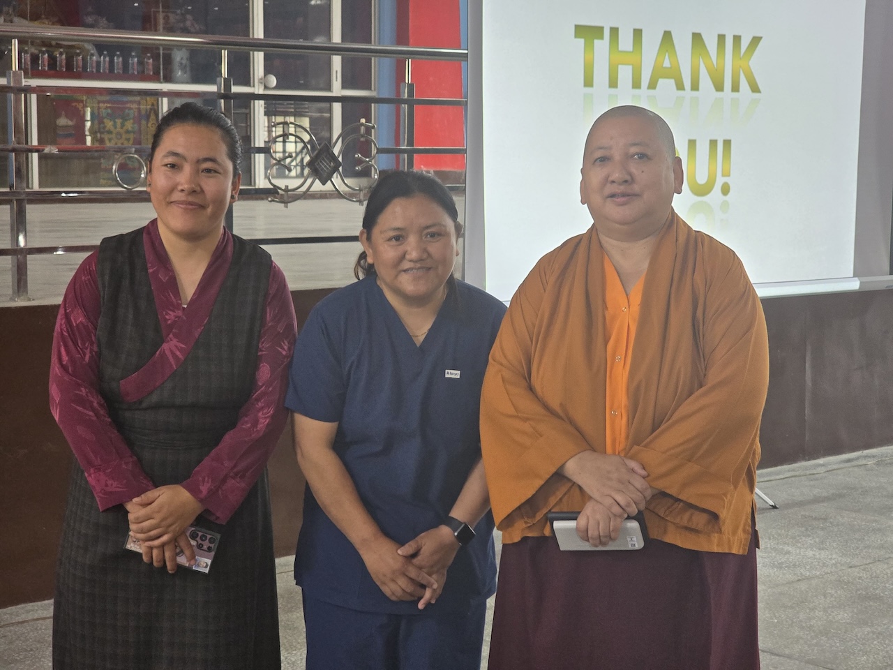 Community nurse Rigzin Wangmo la led a team of healthcare professionals who conducted comprehensive tuberculosis screenings and general medical check-ups for the monks, nuns, staff, and members of the Mindrolling community.  The clinic also included full medical examinations for senior monks and nuns.