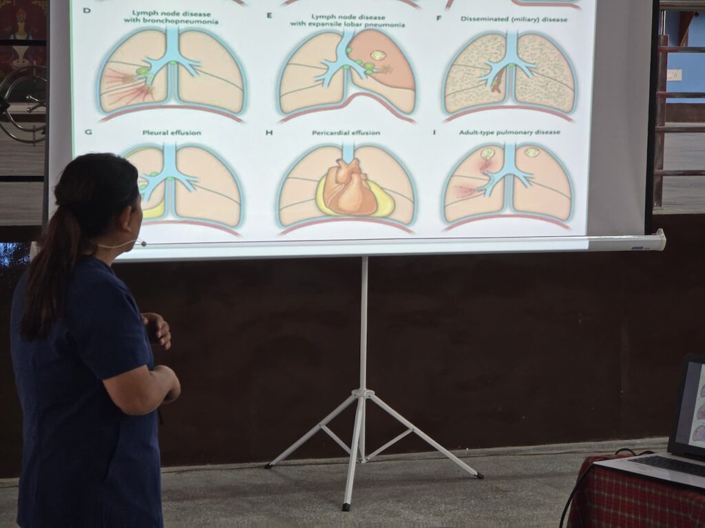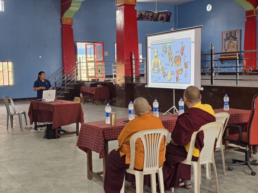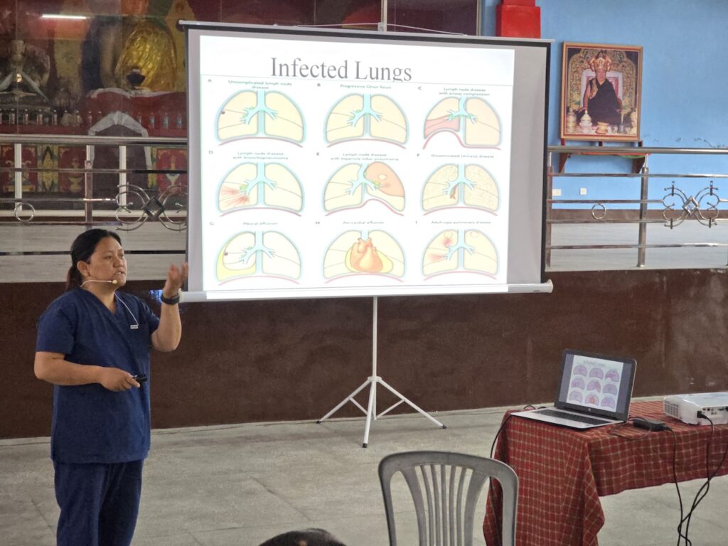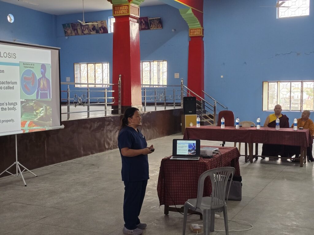 In light of the recent resurgence of tuberculosis in the region, organizing a day dedicated to education, testing, and preventative care was both timely and important for safeguarding the health of the monastic community.  During the session, Nurse Wangmo provided an informative presentation explaining the symptoms, causes, prevention, and treatment of tuberculosis, helping to raise awareness among all participants.  All monks, nuns, staff, and community members received the Mantoux test, followed by further examinations and consultations where necessary.