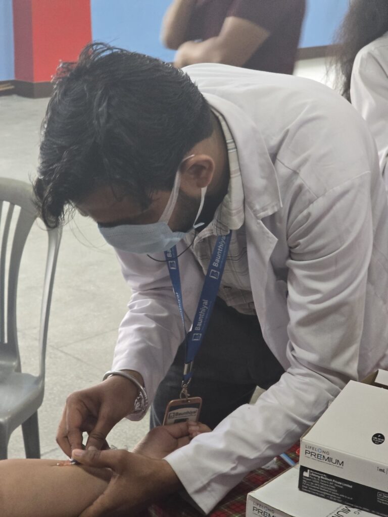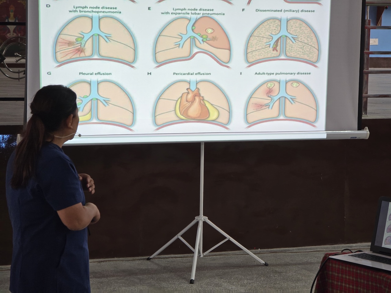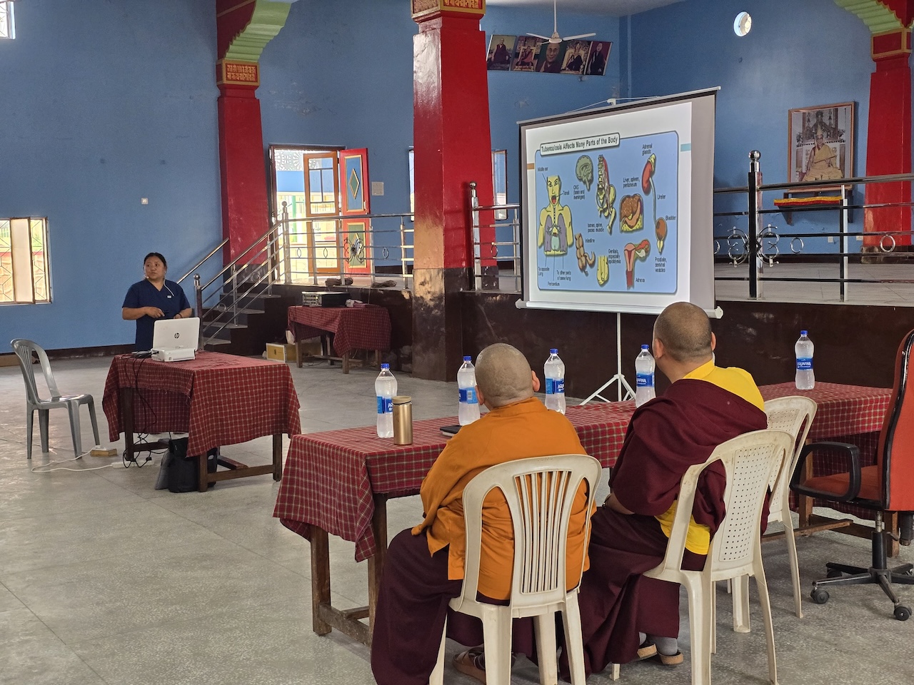 In light of the recent resurgence of tuberculosis in the region, organizing a day dedicated to education, testing, and preventative care was both timely and important for safeguarding the health of the monastic community.  During the session, Nurse Wangmo provided an informative presentation explaining the symptoms, causes, prevention, and treatment of tuberculosis, helping to raise awareness among all participants.  All monks, nuns, staff, and community members received the Mantoux test, followed by further examinations and consultations where necessary.