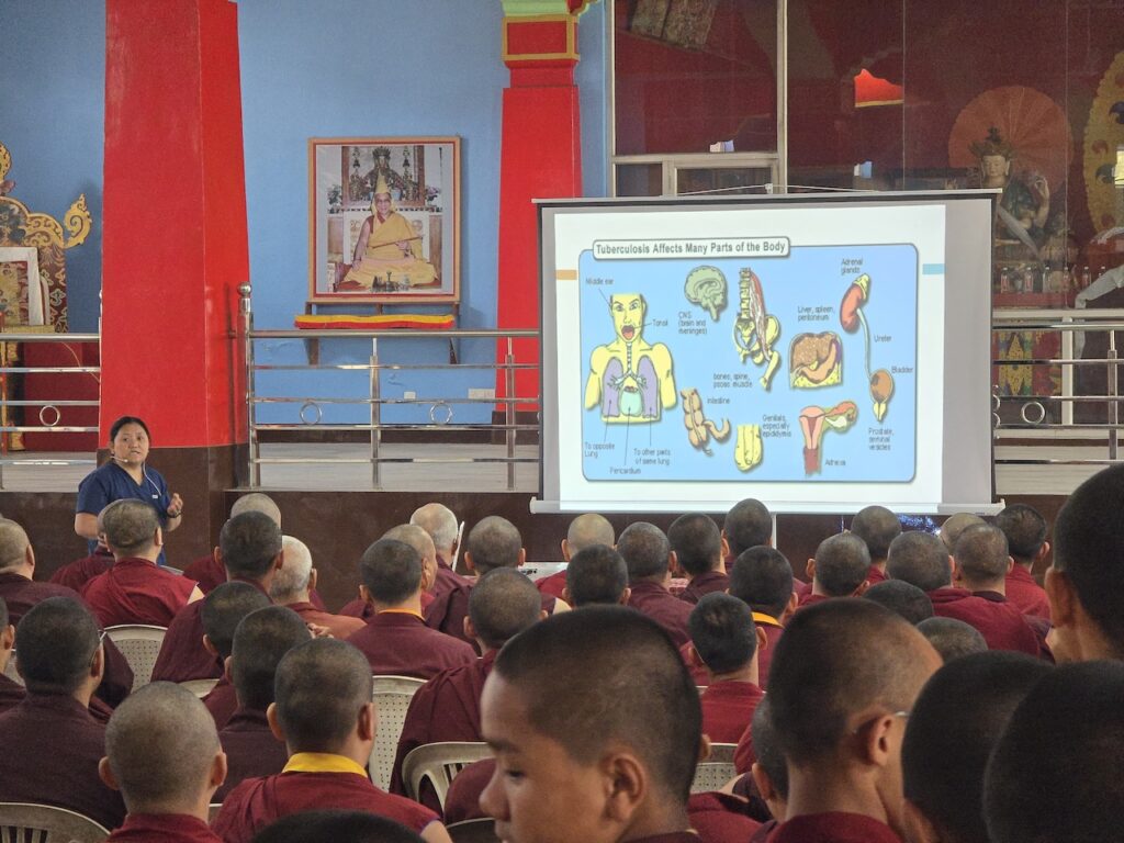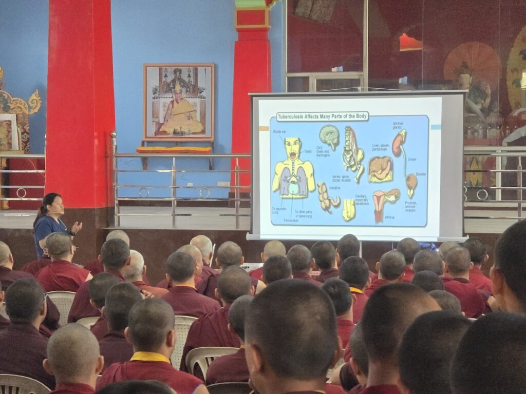 On March 6, 2026, as part of the ongoing efforts to ensure the health and well-being of the monastic sangha and the wider community, Minling Jetsun Khandro Rinpoche together with the administration of Mindrolling Monastery organized a preventative health clinic along with an educational presentation on tuberculosis.