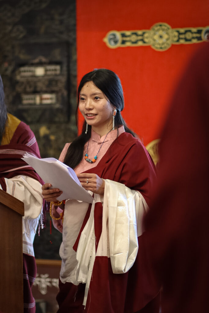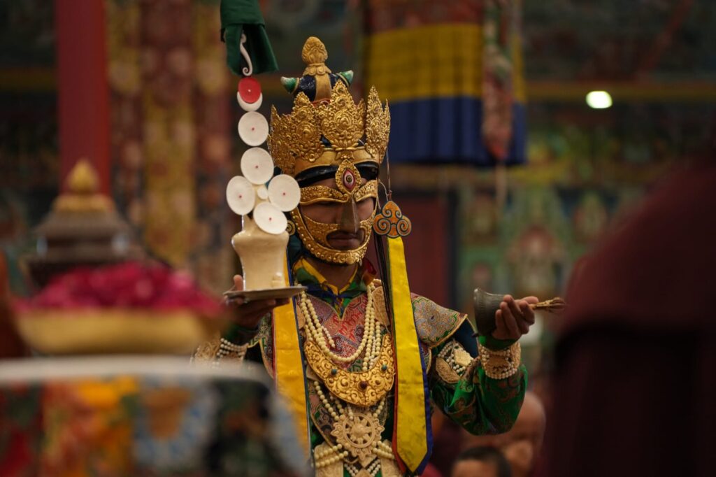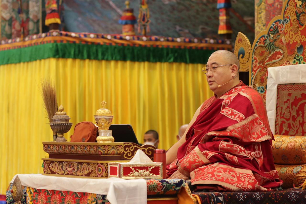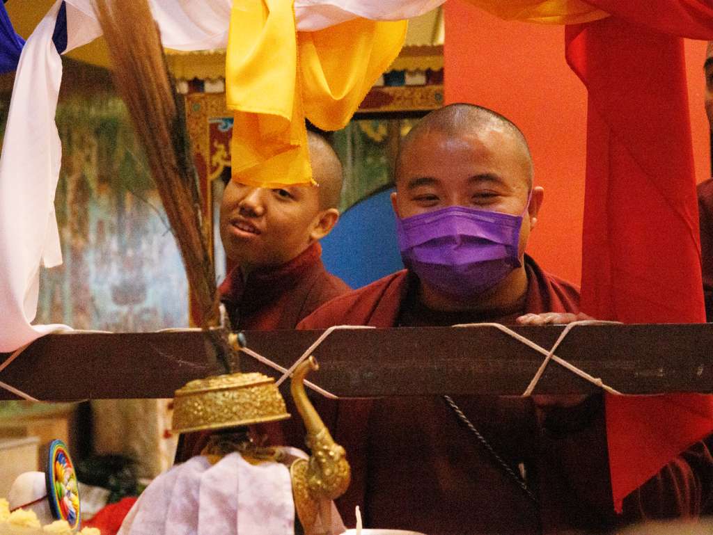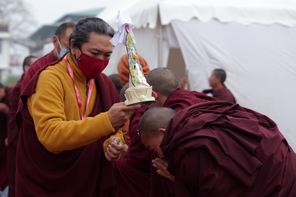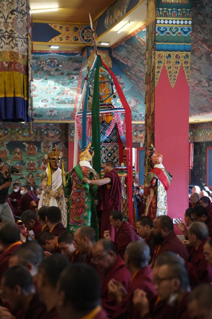 During these afternoon sessions, the young generation of teachers, yangsis, and tulkus performed the wangdrim, bestowing the empowerment articles to each person in the assembled sangha.