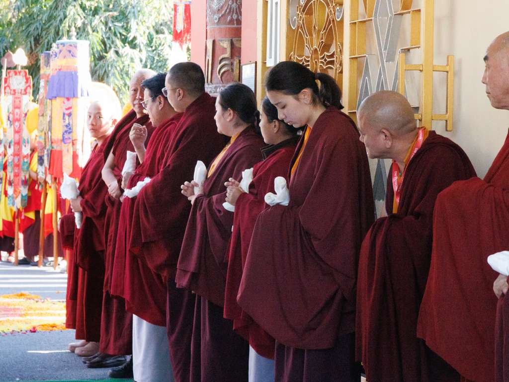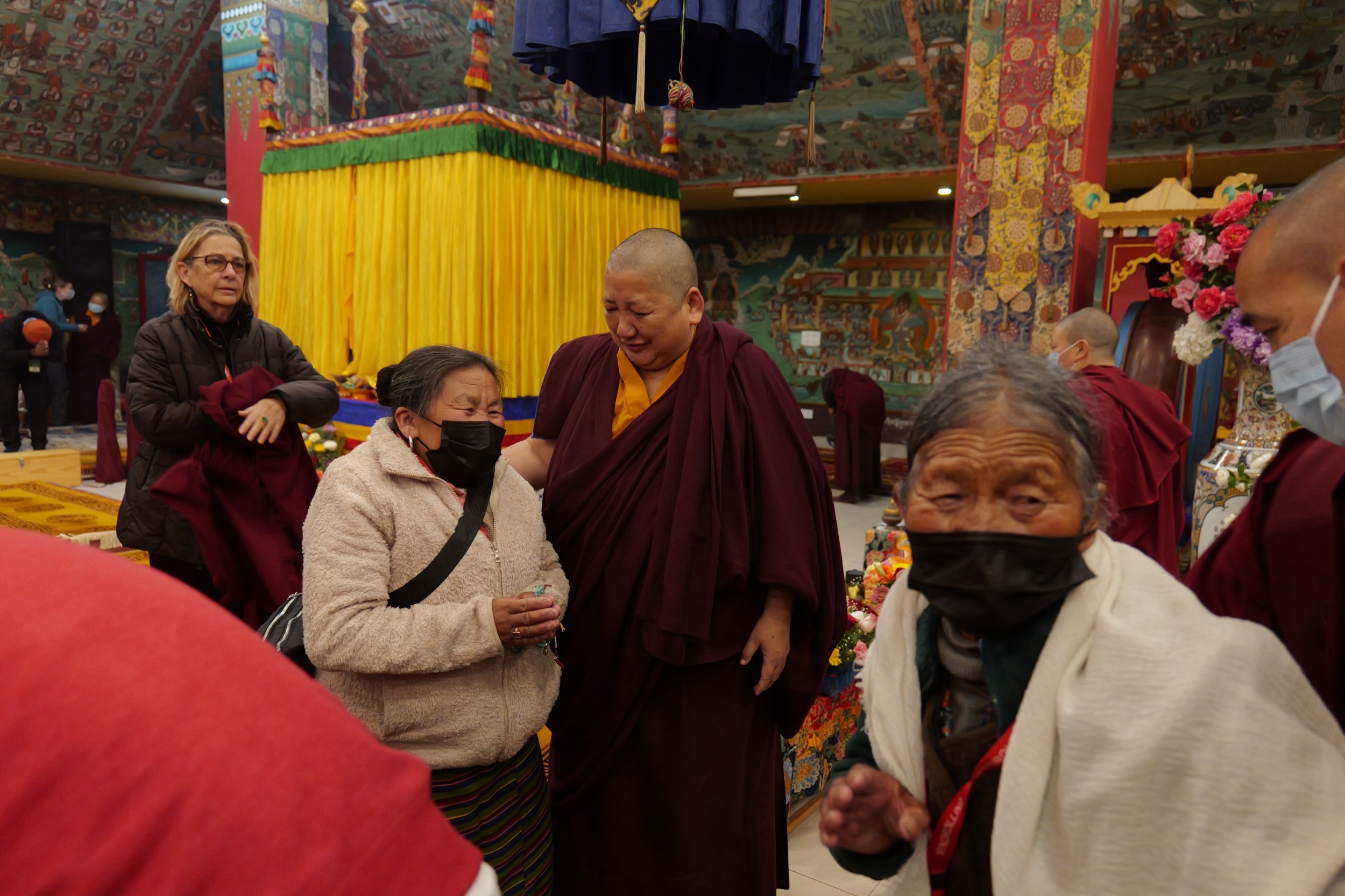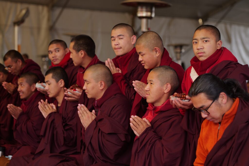 The monastery premises went through extensive renovations and preparations to host the transmissions. The Great World Peace Stupa was renovated, and a tent to cover the thousands of gathered practitioners was erected. To host the thousands of dharma practitioners, the monastery rooms were made available for the incoming guests, any larger spaces were turned into dormitories; and the young monk’s school and sports hall were repurposed to serve as dining venues. With gentle ease and adaptability, the monks worked to transform every corner of the monastery to fulfill the needs of this extraordinary event and provide a warm, comfortable welcome to all the attendees.