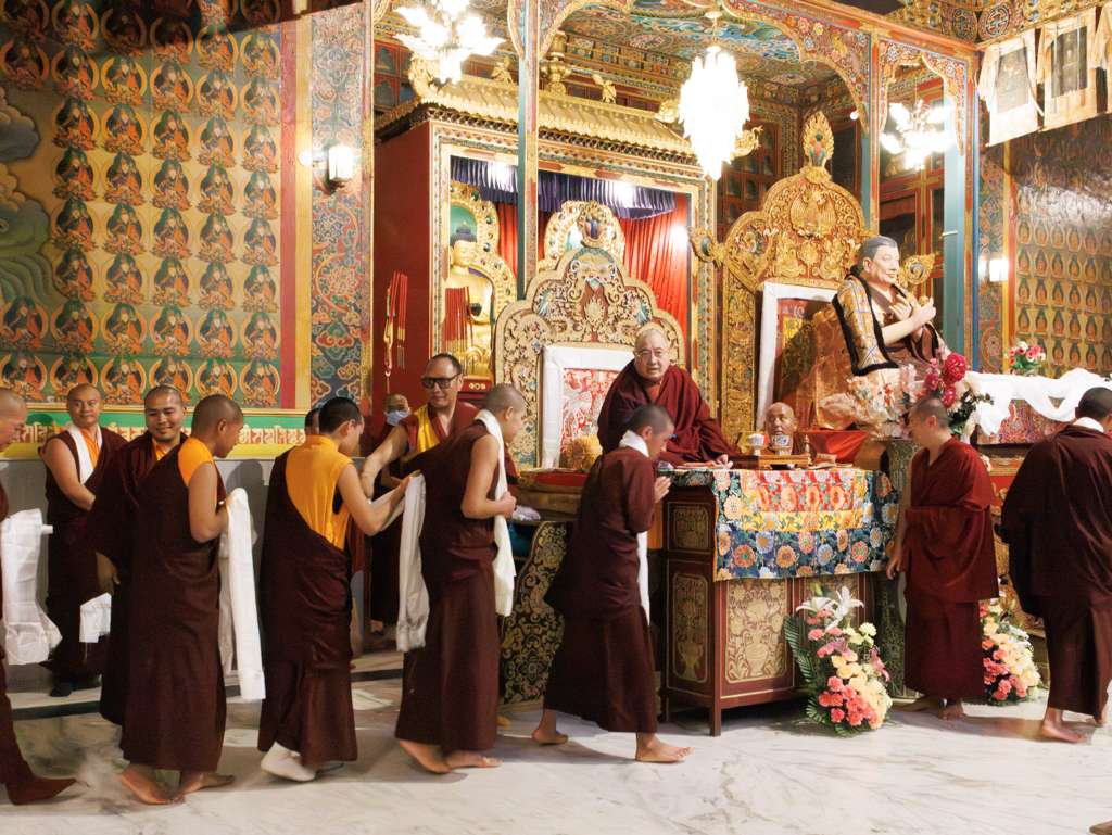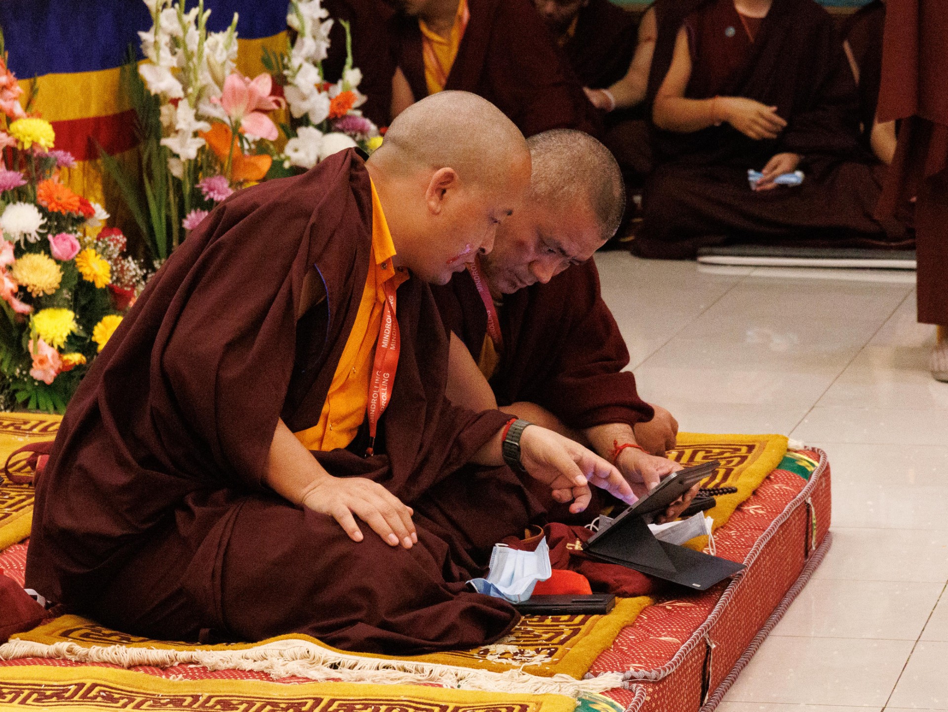 In order to support understanding and recognition of the immense value of these extraordinary empowerments and oral transmissions, accomplished masters and scholars held Symposia, in the evenings on the 11th of December, and on the 3rd and 4th of January respectiviely. During these symposiums the history and significance of the Kama Transmissions were explored and discussed, making the subject accessible to the gathered Rinpoches, tulkus, monastics, and ngagkpas.
