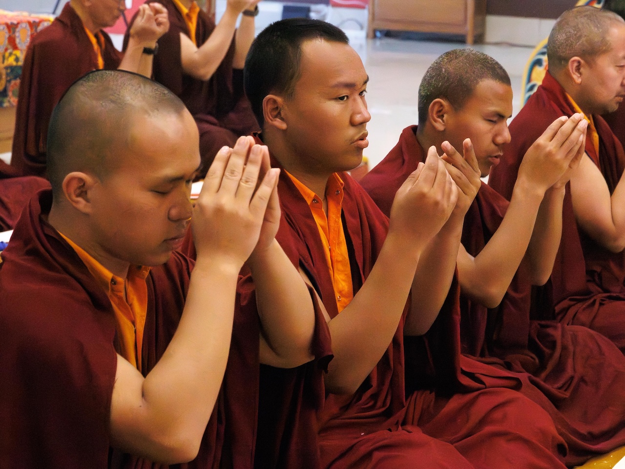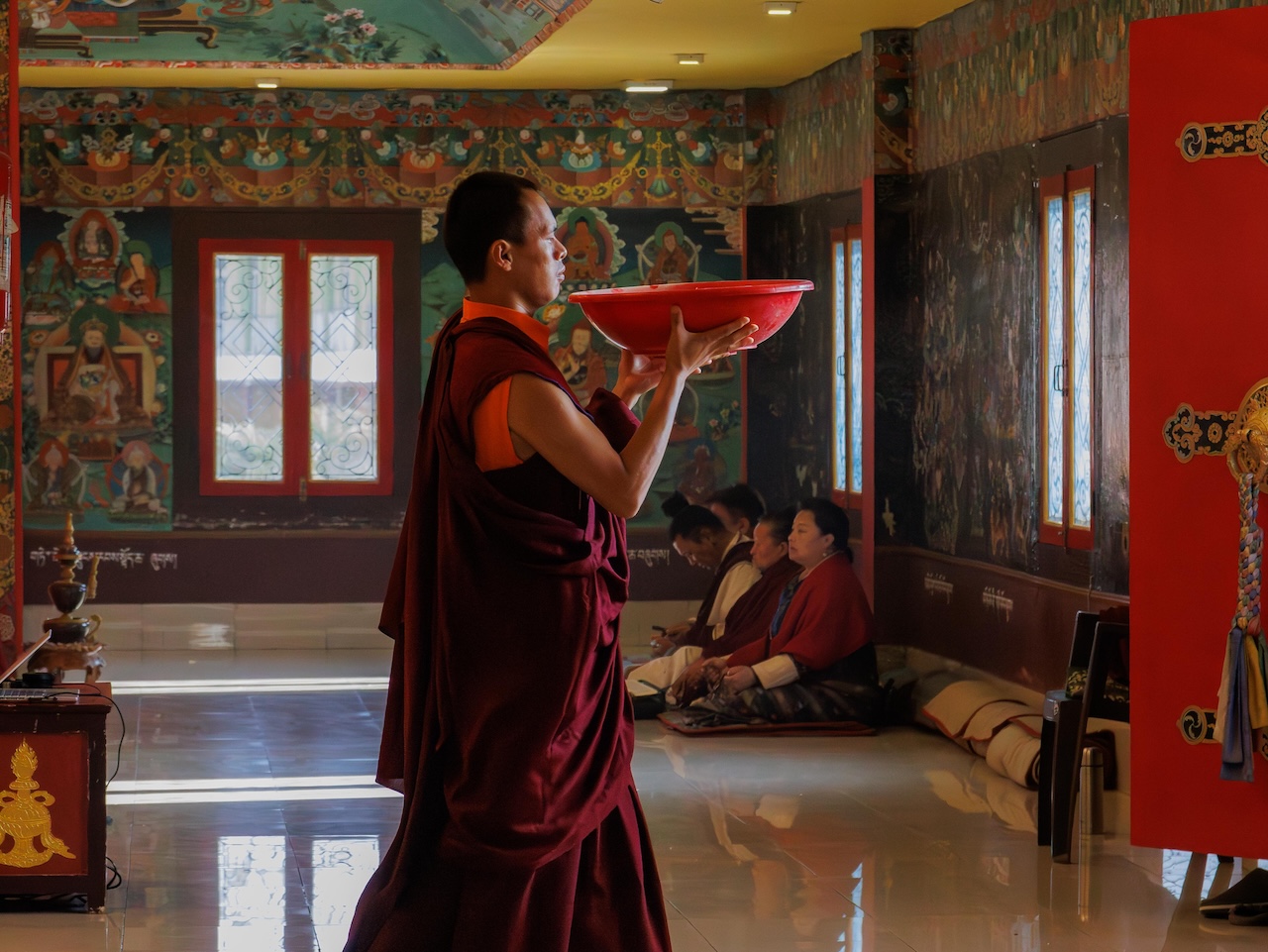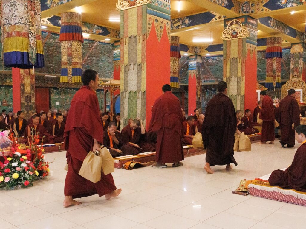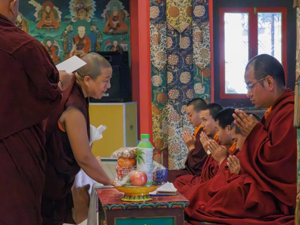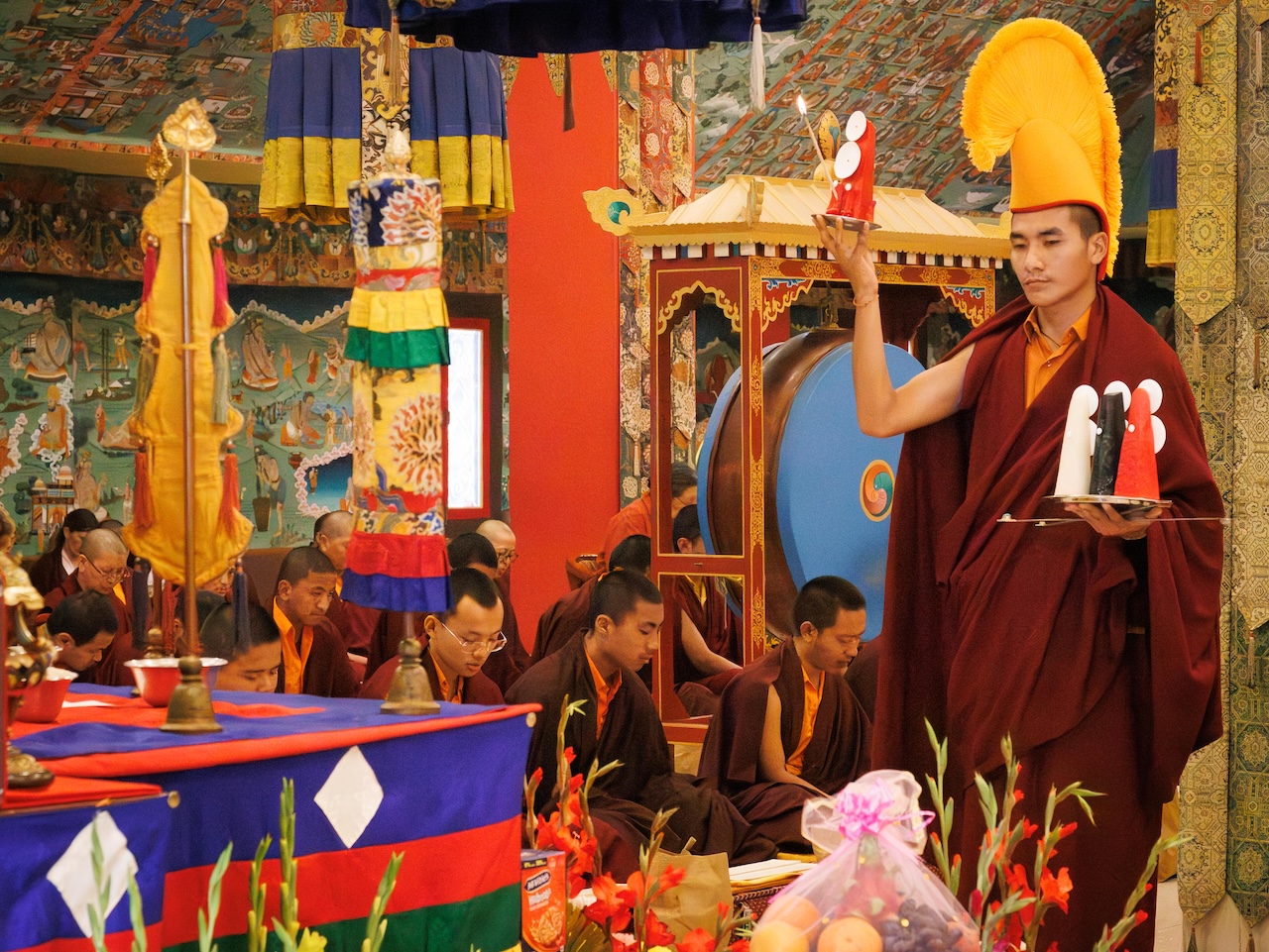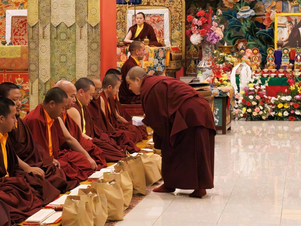 On the third day of Losar of the year of the Fire Horse, 2026, the sangha of Mindrolling gathered to make vast offerings of ganachakra (feast offerings) to mark the anniversary of the parinirvana of Kyabje Minling Trichen.  The assembly was led by Minling Dungse Rinpoche and included Minling Jetsün Rinpoche, Minling Jetsün Khandro Rinpoche, Minling Jetsün Dechen Paldrön, Sangyum Kushog, Venerable Khentrul Marpa Rinpoche and the other Mindrolling tulkus, khenpos, and monks, as well as nuns of Samten Tse, and Mindrolling International sangha members.  Many more sangha members who could not attend in person joined the practice on the internet by live stream.  The entire assembly joined together with great devotion to accomplish the vast ganacakra