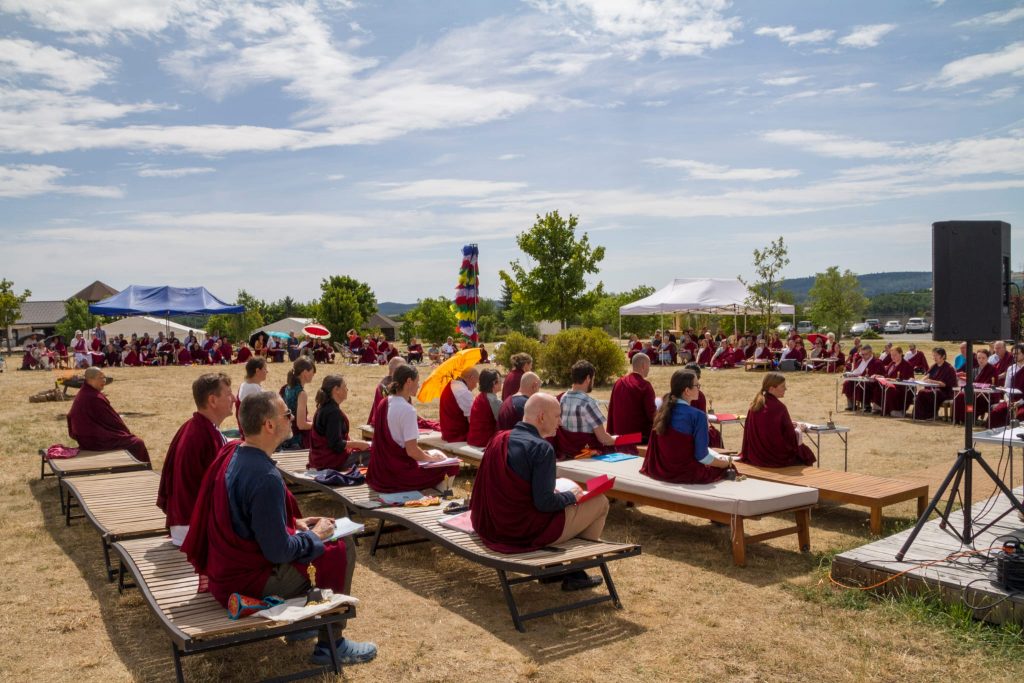 In July 2025, the Mindrolling International sangha gathered in Czech Republic to receive teachings and transmissions from Minling Jetsün Khandro Rinpoche in the annual Vajra Assembly. The retreat began on the 5th of July, which coincided with the most auspicious Guru Rinpoche Day, Teda Tshe Chu, and Rinpoche led the sangha in the tshog offering (ganachakra in Sanskrit) to Guru Rinpoche on this auspicious day.