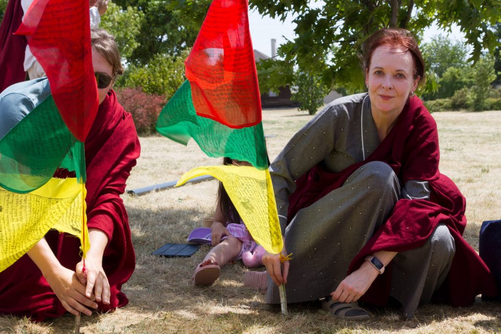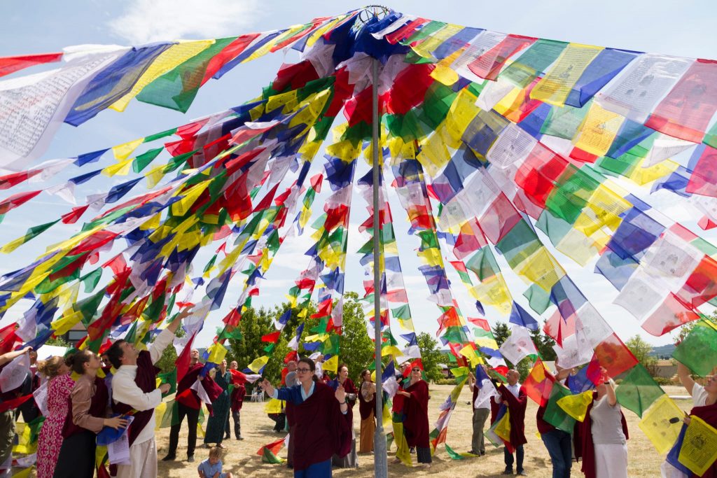 The chö gar was established following all proper rituals for making offerings and preparing the land. Following this, the sangha raised lungta flags and joyfully shouted the traditional “Kiki Soso!” for the tendrel of long life.